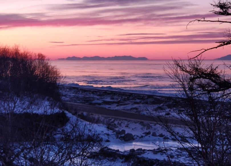 Зимой средняя температура — 15 , очень много солнечных дней. На фоне зимних пейзажей , очень красиво смотрится синего  цвета  Охотское море, а замерзшие ручьи и реки ярко голубого  цвета, и конечно много белоснежного снега. А закаты и рассветы зимой это просто сказка от ярко розоватого цвета до ярко оранжевого. Это только  надо увидеть, словами не передать. Можно проводить шикарные фото сессии.
